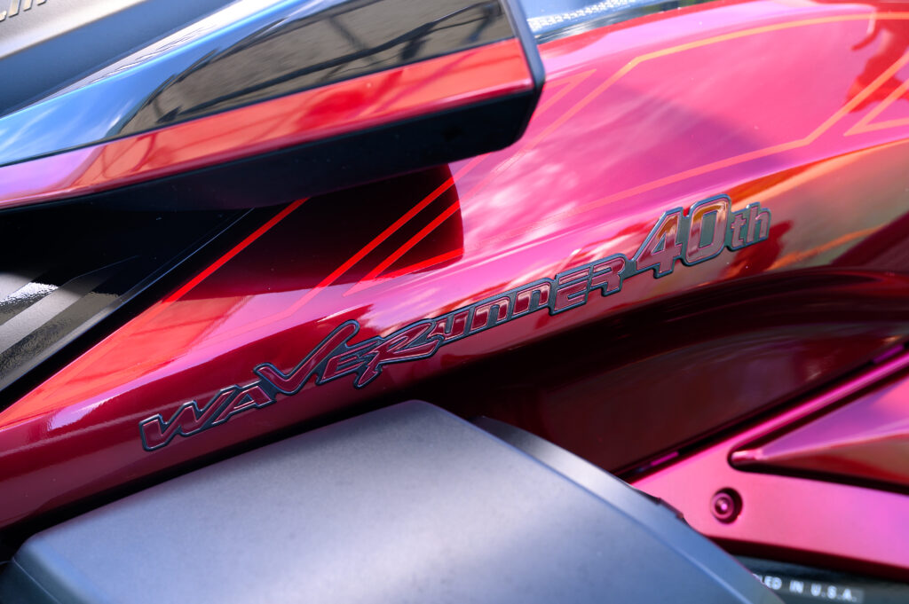 フロントサイドやシート背面にあしらわれた「WaveRunner 40th」のエンブレムは、過去のモデル名から引用した書体を一部に織り交ぜた特別なデザインです。漆黒の煌めきを放つ黒クローム調のエンブレムを採用し、奥行きのある高級感を演出しています。